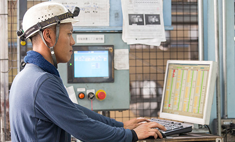 2000年代よりITを駆使した生産および品質管理システムを構築しています。各工程にパソコンを約130台配置し、作業者が生産と品質のデータを見ながら作業を進める一方、さらにそのパソコンと本社のサーバをネットワークで結び、データを一元管理。自動化された設備と合わせ、品質の高い製品を効率よく製造できる仕組みを作り上げています。